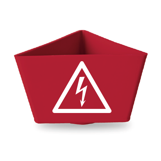 Unsere Leitzahlträger mit Blitz-Symbol markieren einfach und schnell auf allen magnetischen Untergründem im täglichen Ablauf kenntlich und sichtbar Gefahren durch Stromschlag.
